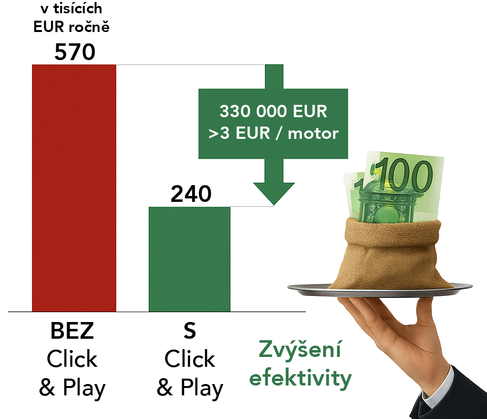 Jak lze drasticky snížit vysoké montaže náklady při výrobě elektromotorů? Naše odpověď: „Click & Play“! Díky nasazení naší TMC MR 2. generace a tím umožněné automatizované montáži se podařilo snížit náklady o 0,5 mil. eur ročně.